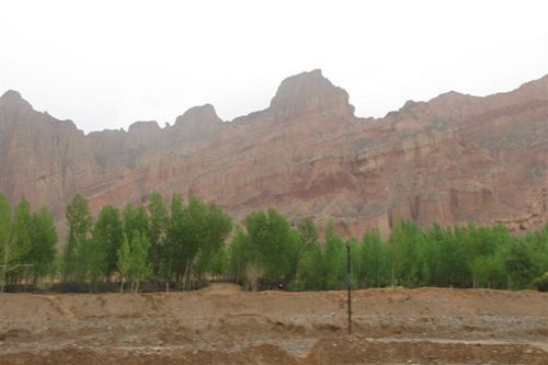 從湟中出發(fā)時(shí)天空下著淅瀝的春雨,同事們感嘆的說(shuō)懶人出門(mén)天不晴!糟糕的天氣并沒(méi)有絲毫影響我們游貴德的心情。一路上我們憧憬著美麗的貴德,在不知覺(jué)中車子開(kāi)到貴德與湟中的界山——拉脊山,是因?yàn)檫@里海拔高還是因?yàn)樵愀獾奶鞖猓股教幭轮艽蠛艽蟮难诖蠹业慕ㄗh下我們下車與這溫情的春雪在拉脊山上來(lái)個(gè)零距離的擁抱,我們拍照、吶喊、高歌享受著不一樣的春趣,可沒(méi)到目的地還得繼續(xù)趕路。從拉脊山上下來(lái)天空慢慢放晴,沿途獨(dú)特的丹霞地貌映入眼簾,各種形狀鬼斧神工、渾然天成、惟妙惟肖的山巒此起彼伏,有的像城堡、有的像塔林,有的看似動(dòng)物的造型,而顏色有的紅的似火紅,青的如黛,如此震撼景觀真是耐人尋味。