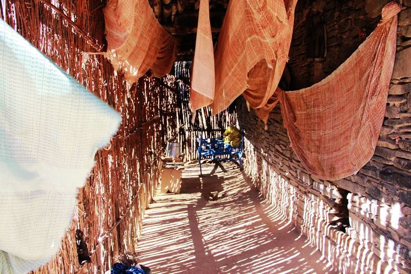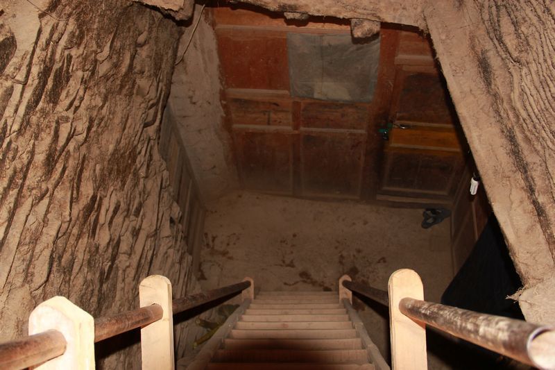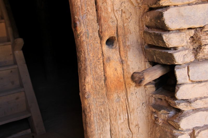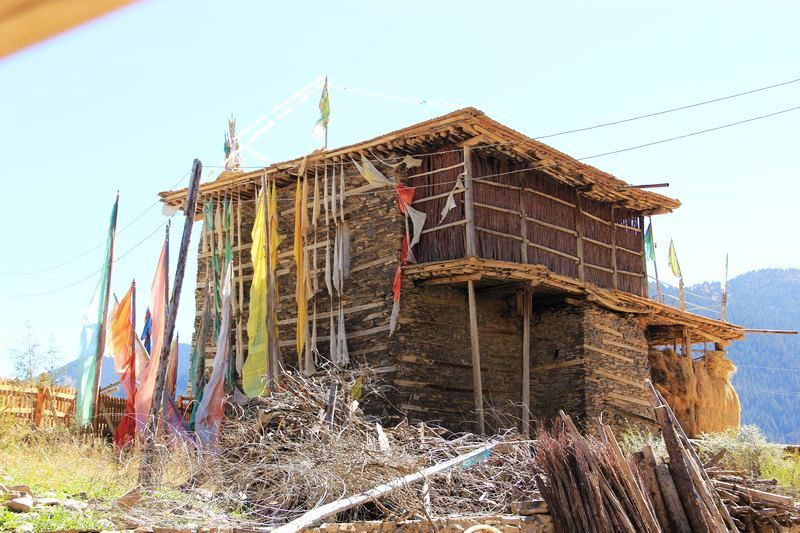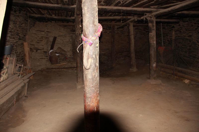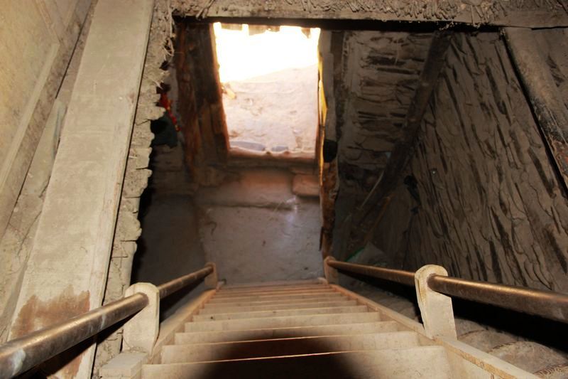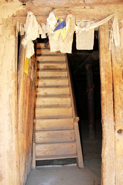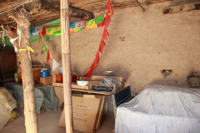 這座藏式碉樓共上下三層,一層為圈牲口,放一些農(nóng)用的家當(dāng);二樓為人居住的地方;三樓為佛堂,掛一些經(jīng)幡之類的東西。