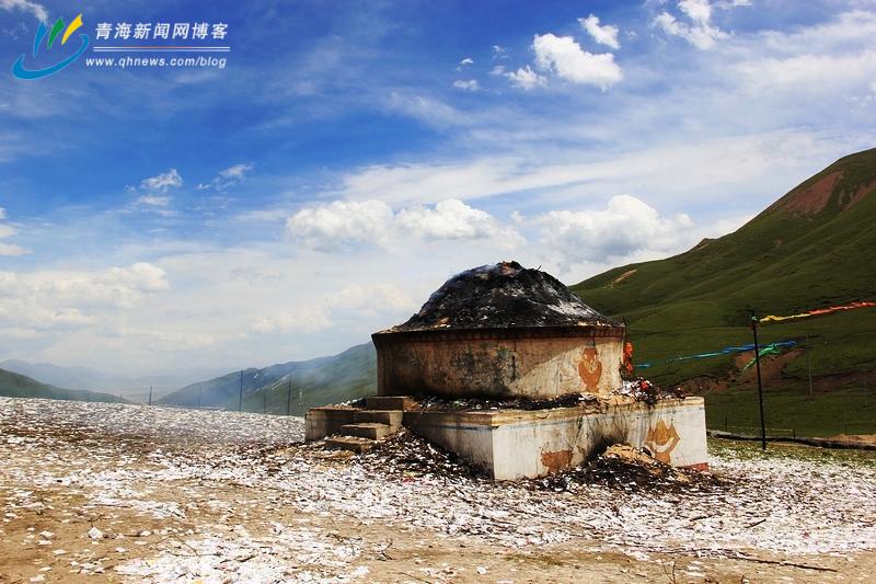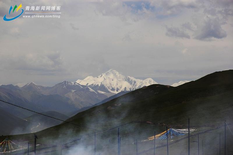 遠處的雪山是著名的阿尼瑪卿雪山。