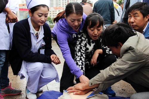 市民體驗(yàn)救人的方法方式 本網(wǎng)記者 劉志強(qiáng)攝
