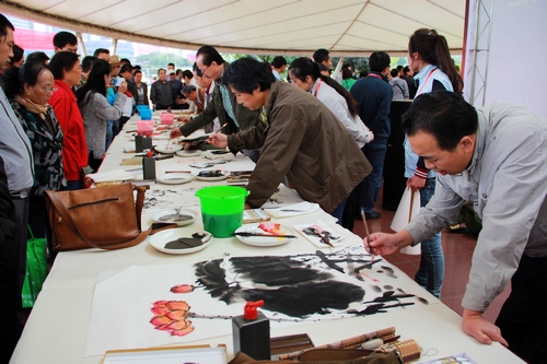 書畫家揮毫潑墨現(xiàn)場(chǎng)書畫 本網(wǎng)記者 劉志強(qiáng)攝