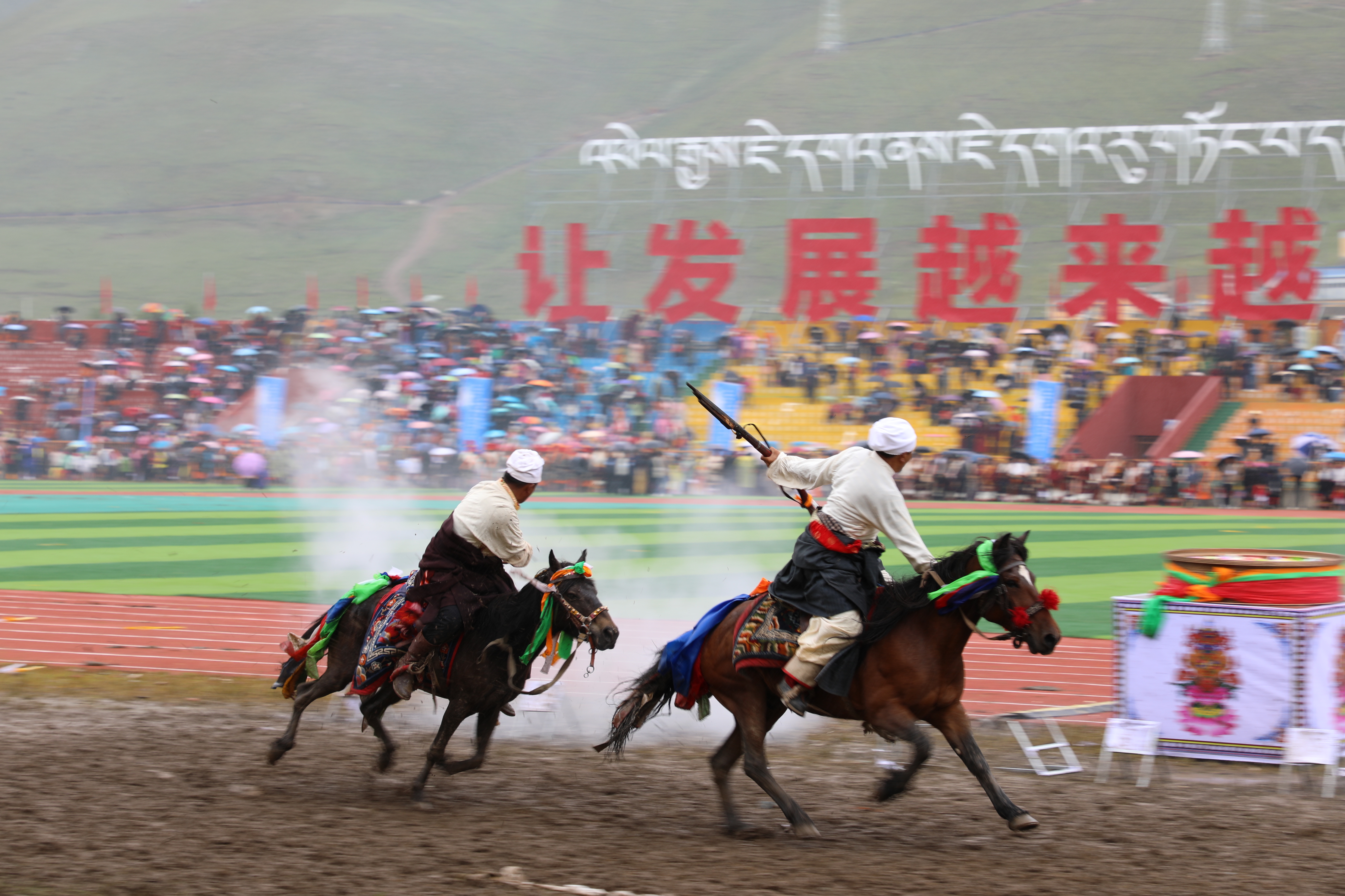 上萬人相聚雪山腳下的玉樹賽馬場,盡展玉樹風采。玉樹兒女用歌來訴說,用舞來表達,訴說近年來的發展成就,表達對黨的感恩、對祖國的美好祝福。