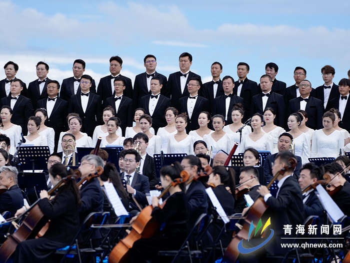 開幕式上,來自中國交響樂團、江蘇交響樂團、天津音樂學院青年交響樂團和青海省演藝集團的共480名演藝人員,以碧水藍天為背景,用音樂的浪漫與情懷,表現青海人民團結奮斗的時代精神,詮釋青海大地積淀厚重的特色文化,也體現了對口支援、東西部協作文化交流的喜人成果。
