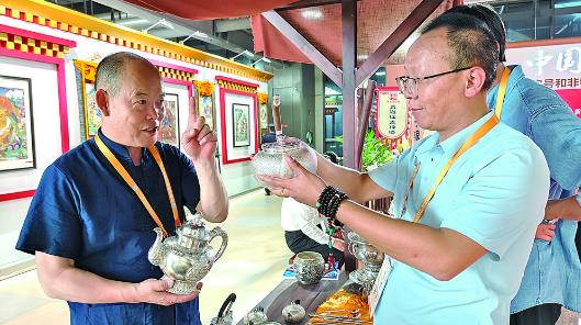 藏族唐卡、青繡、銀銅器制作及鎏金技藝、藏藥、青稞酒、龍羊峽三文魚……青海省老字號和非物質文化遺產展館內,每一個“老字號”“非遺項目”無不展示著絲綢之路“青海道”獨特的文化。