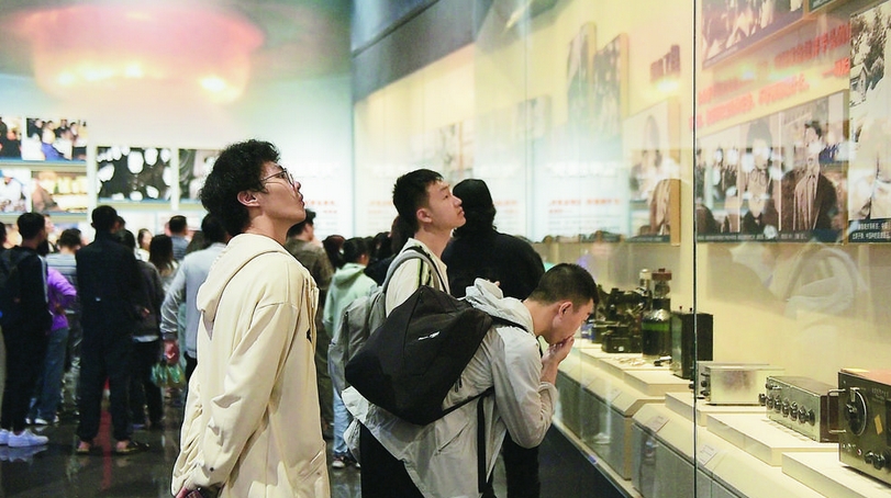 走進(jìn)紀(jì)念館,就仿佛翻開(kāi)一本厚重的歷史教科書(shū):整座紀(jì)念館通過(guò)一張張照片、一件件實(shí)物和聲光影像資源,展現(xiàn)了從原子彈立項(xiàng)到研制成功的全過(guò)程。“展館2009年5月建成開(kāi)放,2021年6月經(jīng)改造升級(jí)后重新開(kāi)放。展陳面積達(dá)6000多平方米,展出圖片600多幅,還有900多件革命文物。”工作人員指著一臺(tái)陳列機(jī)器說(shuō),像這臺(tái)當(dāng)年科研人員使用過(guò)的國(guó)產(chǎn)高速轉(zhuǎn)鏡掃描相機(jī),現(xiàn)在仍可使用。