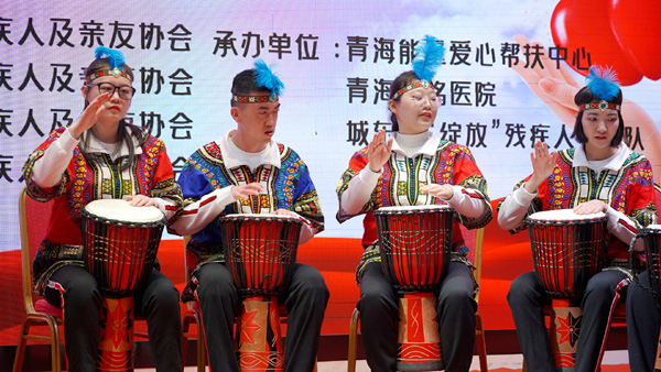 文藝匯演中,志愿者和殘疾人同臺演出,共唱和諧新曲。精彩的文藝表演,展現了殘疾人朋友頑強的意志和藝術水平。