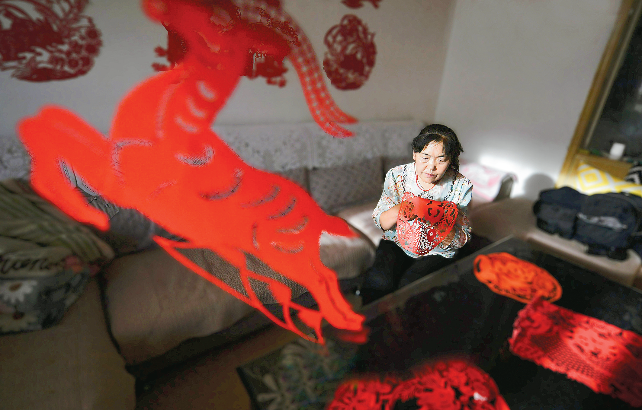 王風英繡的荷包、香包等一經展出,就被一搶而空。十里八村每戶人家的墻上,都有她剪的“全家福”“獅子滾繡球”“春夏秋冬”“梅蘭竹菊”“四大名女”“榮華富貴”四屏條等美不勝收的民間剪紙作品。
