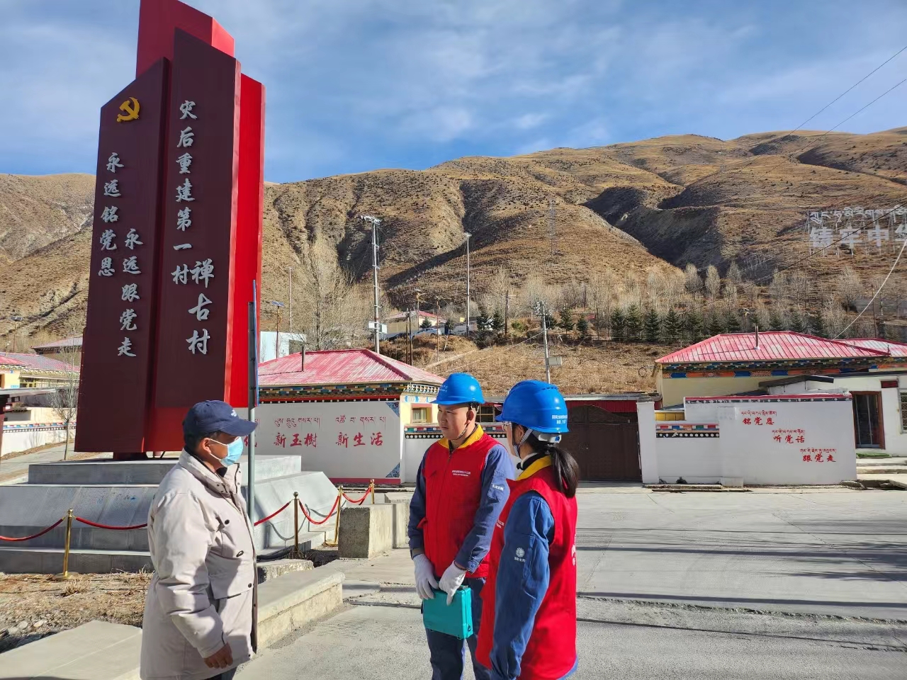 電網工作人員向禪古新村村民了解村級企業安全用電和產業用能需求。攝影:普布永措