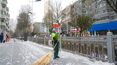 15日8時后,各縣區第一時間啟動黨政軍企包段掃雪機制,動員轄區各級機關單位組織力量,有序上街開展包段掃雪工作;動員沿街2200余家商業門店“自掃門前雪”。各街道社區動員轄區小區物業單位開展小區樓院清雪行動。進入交通早高峰后,各縣區城管環衛部門及時調整清雪作業模式,采取“人工為主、機械為輔”方式,持續清理人行道、過街天橋、廣場等區域降雪,全力保障市民正常出行。