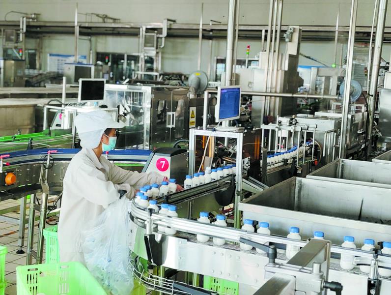 在無菌灌裝車間,一排排整齊的管道直通灌裝機,鮮奶隨著灌裝機有節奏的聲響被灌裝進包裝袋內。一袋袋鮮奶在傳送帶上勻速前行,前往包裝車間。包裝車間里,機器變得格外“熱鬧”,工人也明顯增多。有的機器正在將包裝箱展開,有的則負責將袋裝奶裝入箱內,還有的負責粘貼包裝;工人們有的負責關注每袋牛奶的重量,有的監測記錄,有的搬運……袋裝奶、瓶裝奶、凝固酸奶、攪拌酸奶在這里“碰面”,“青海老酸奶”“托倫寶”“藏之寶”“青藏人家”“雪域圣純”“小西牛”幾大品牌在這里匯集,隨后被運送至倉儲中心等待發往全國各地。