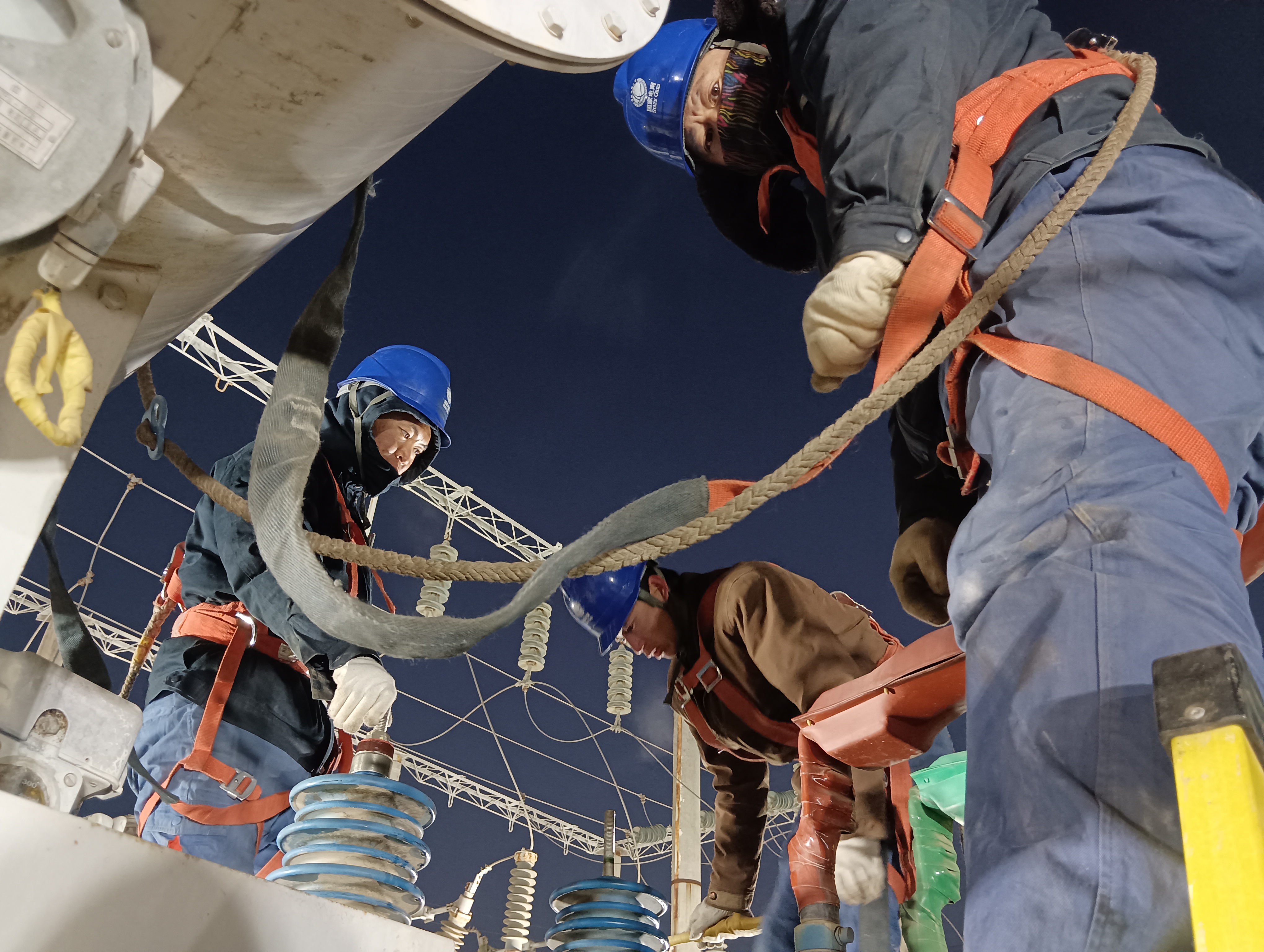 12月19日,750千伏官亭變電站運維人員開展震后特巡。段卓攝