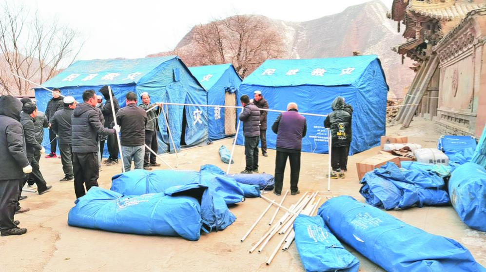 冒著冬夜酷寒,爭分奪秒、傾盡全力,為的是讓受災群眾在集中安置點的頭一夜里感受家一樣的溫暖。看著一頂頂帳篷搭建起來,全村280多戶1370個村民安置妥當,村監委會主任祁明守長舒了一口氣,又開始清點救援物資。