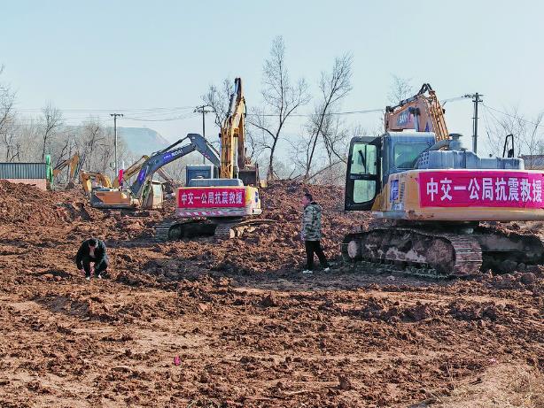 與積石山一河之隔的中交二公局大清高速項目部,在完成自救后,收到上級指令立即向積石山震中受災嚴重的區域進發,搶修完成震中的3條道路,緊接著前往民和縣中川鄉金田村開展救援。