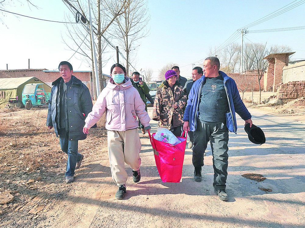 13時10分許,牛肉、羊肉、30箱水果、300個油餅、300個麻花以及裝有全村婦女刺繡作品的禮包全部準(zhǔn)備完畢,草灘村群眾向救援人員所在地趕去。