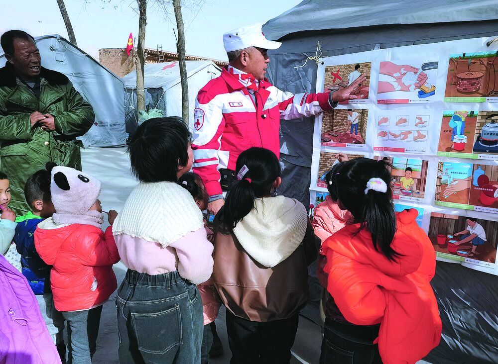 “我們的隊員大多是青海人,看到家鄉群眾受災,他們開展工作更加積極和投入。尤其隊伍中的黨員,沖鋒在前、勇挑重擔,幫助受災群眾搭建帳篷、搬卸物資,組建巡邏隊24小時巡邏等,哪里有需要,他們就出現在哪里。”西寧市紅十字神鷹賑濟救援隊馬衛軍說。
