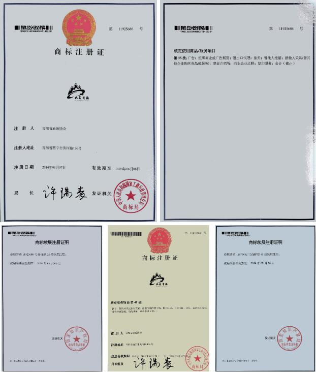 2010年,省人民政府批復同意將“大美青海”注冊為青海省旅游形象商標。2014年,原國家工商行政管理總局商標局批準注冊成功,并獲得注冊商標45個大類中的42個類別商標注冊證書,商標專用權期限為10年。商標的注冊成功標志著“大美青海”成為青海省重要的知識產權,是繼“好客山東”“七彩云南”“多彩貴州”后以省級地域名作為形象定位的注冊商標,“大美青海”品牌形象已形成廣泛市場影響力。