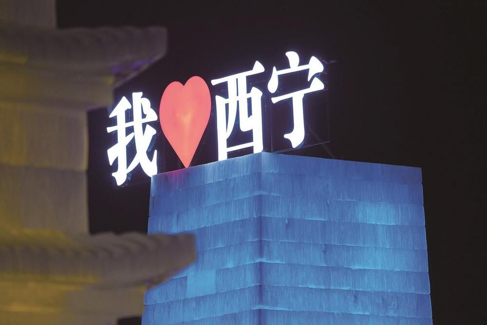 走進位于城東區(qū)博文路46號的高原冰雪大世界,巧奪天工的冰雕作品讓人目不暇接。順著18根象征著希望的綠色之光迎賓柱就能看到一些熟悉的冰雕:以龍年春節(jié)為核心打造的十二生肖冰雕景觀;以春節(jié)年味為立意,制作的大型冰燈籠景觀;還有西寧特色主題大型地標冰燈景觀——文峰塔、北辰門、鳳凰亭等;以青藏高原生態(tài)為立意制作的三江源紀念碑、雪豹、藏羚羊、野牦牛、兔猻等生態(tài)動物冰雕。
