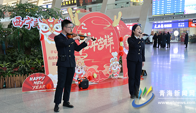 候車室內,出行的旅客攜老帶幼,拎著大包小包,臉上難掩回家的喜悅之情。近日,來自中國鐵路青藏集團有限公司文聯的13名鐵路書法家搭起案臺為旅客寫春聯和“福”字,讓旅客把滿滿的福氣帶回家。車站“天路格桑花”服務小分隊也同時行動了起來,他們在候車室的人群中穿梭往來,在服務旅客的同時,向候車旅客認真介紹“12306”的服務新功能和車票改簽新規則,并與旅客進行有獎互動問答。小提琴演奏和愛國歌曲演唱等“文藝快閃”表演,更是把春運的氣氛推向了高潮,一時間歡聲笑語溢滿了車站。
