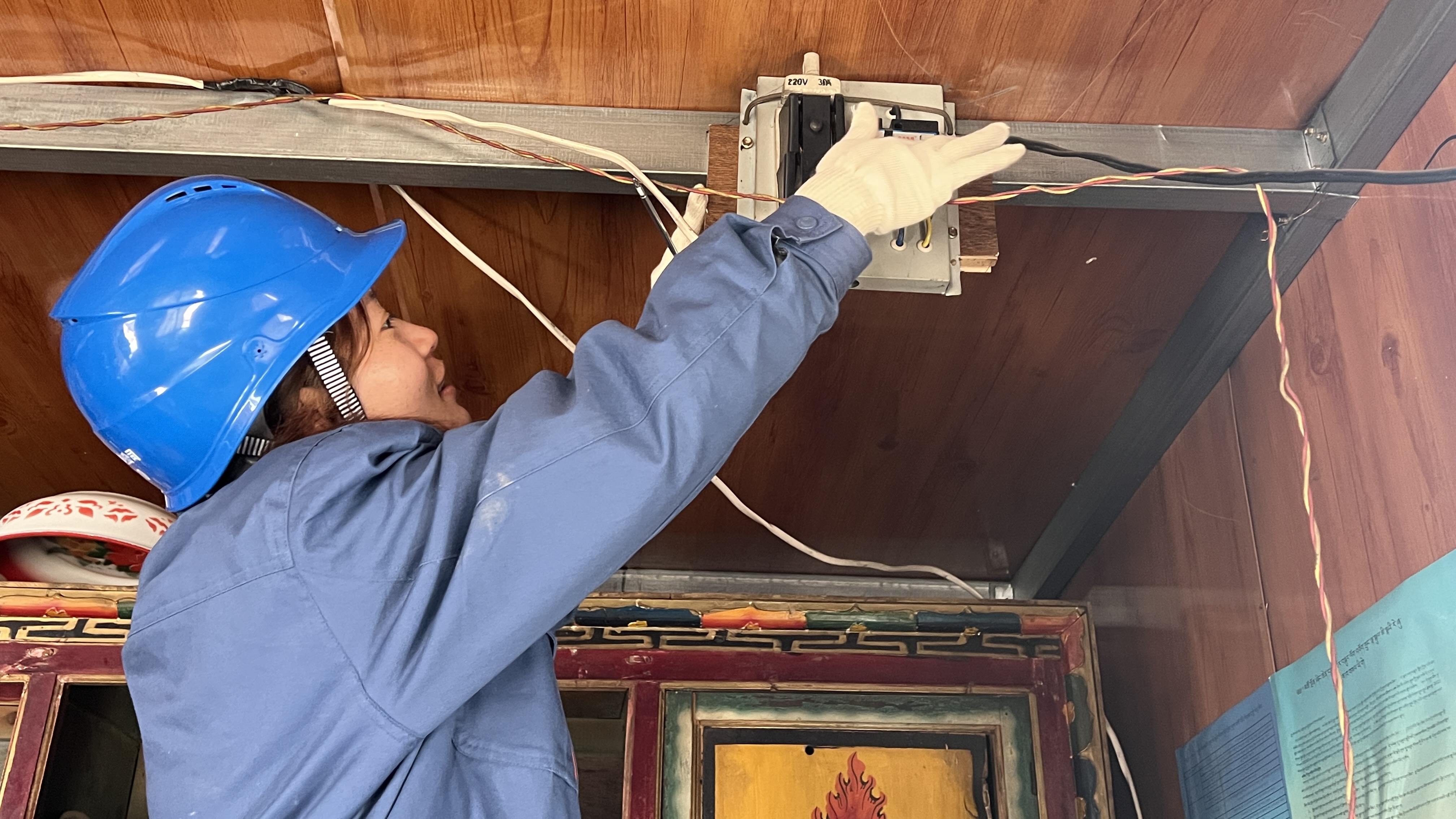 今年78歲的措尕是一名獨居老人,腿腳不太方便,子女也不在身邊。藏歷新年就快到了,2月1日扎西拉毛特意來到老人家中,幫忙檢查家中電器設備,義務更換開關插座和室內外老化線路。