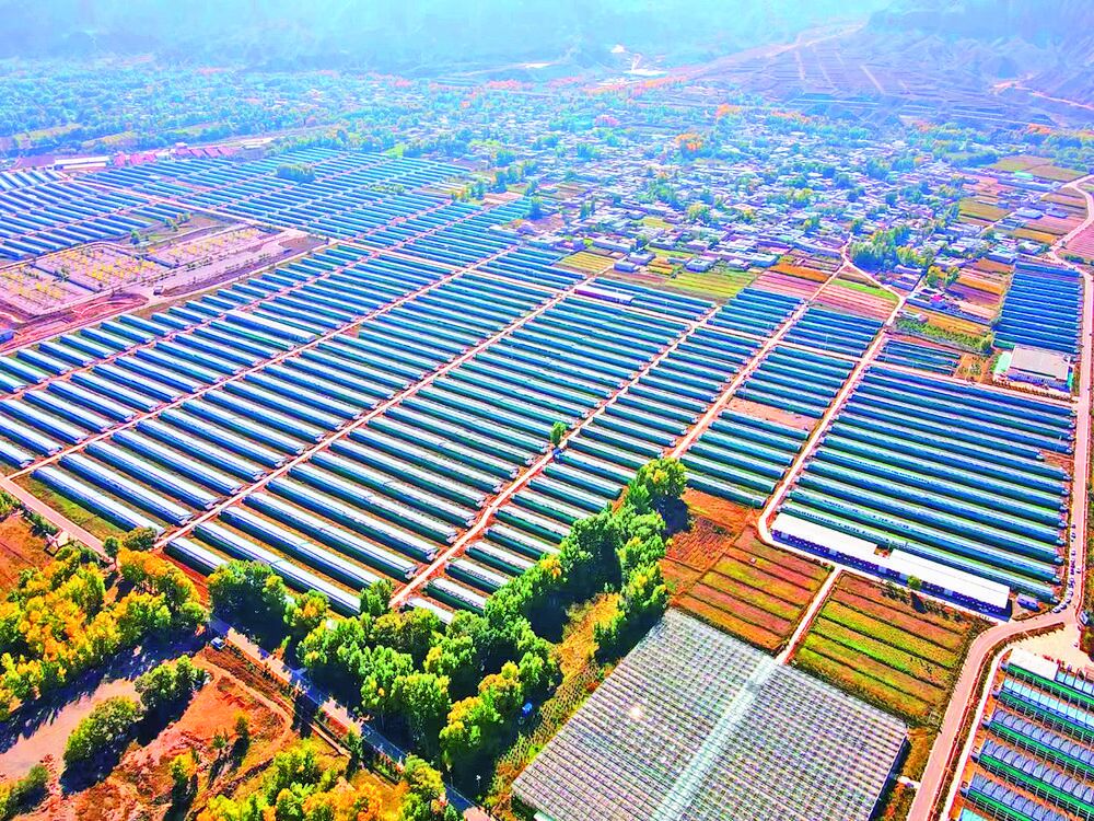 青海新聞網(wǎng)·大美青?蛻舳擞 春回大地,“黃河彩籃”高原現(xiàn)代農(nóng)業(yè)產(chǎn)業(yè)園里,慶豐路、產(chǎn)業(yè)路、富民路……一條條飽含美好愿景的寬闊道路串連著星羅棋布的蔬果溫棚,繪出村民富裕生活的藍(lán)圖。從高空俯瞰,一棟棟溫棚就像大海遠(yuǎn)航的“艦隊(duì)”,整齊劃一地排列在豐沃的河灣里。