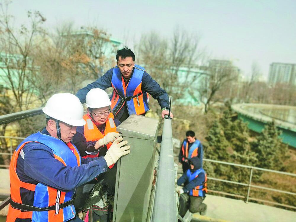 只見偌大的廠區內除了新年的裝飾,一切跟平時一樣,污水處理設備都“藏”在綠化設施中,廠區內幾乎看不見人,也聽不見噪音,更聞不見異味。直到登上距離地面兩米多高的二次沉淀池,在寒冽的清風里,記者才見到了水區巡視工馬元年。