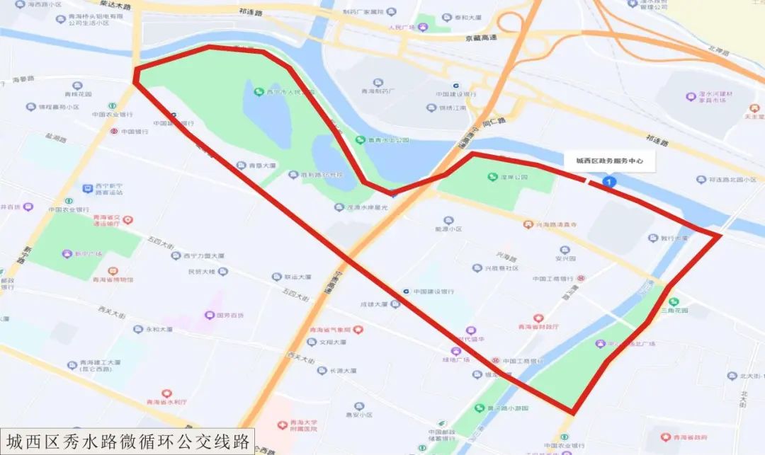 ?空军c:城西區(qū)政務服務中心、青海日報社、三角花園、中心廣場北、五岔路口、同仁路口、西寧浴池、交通巷北口、秀水路西、秀水路中、秀水路城市公園、城西區(qū)政務服務中心。