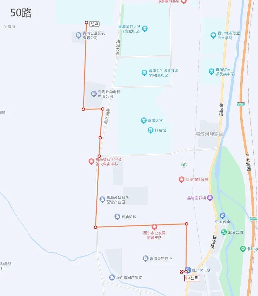 線路走向:青海理工大學、崇德路、永年街、清源路、海湖大道、金羚大街、寧張路。
