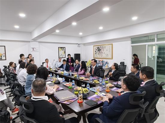 中國駐泰國大使館僑務參贊劉敬師對媒體采訪團表示熱烈歡迎,就加強僑務工作、推動人文交流、增進中泰友誼介紹了情況。泰中文聯負責人介紹了有關工作。