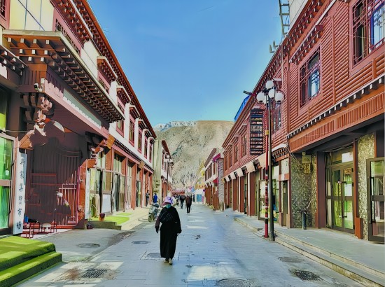 沿著道路往里走,“格仲民族用品商店”“時髦服裝店”“萍萍生活超市”……街邊的商鋪一應俱全,各類商品應接不暇。順著人們的腳步,數十億塊石頭堆砌而成的嘉那嘛呢石堆出現在眼前,蔚為壯觀。