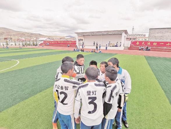 陪同采訪的學(xué)校教師閆峰蘭說,由于這里地廣人稀,高原上的孩子娛樂活動(dòng)不多,足球成了他們放飛心靈、展現(xiàn)自我的方式。盡管海拔高、空氣稀薄,但學(xué)生們對(duì)足球運(yùn)動(dòng)的熱情不減。盡管課間只有10分鐘,2分鐘去趟衛(wèi)生間,剩下的8分鐘也要去踢足球。