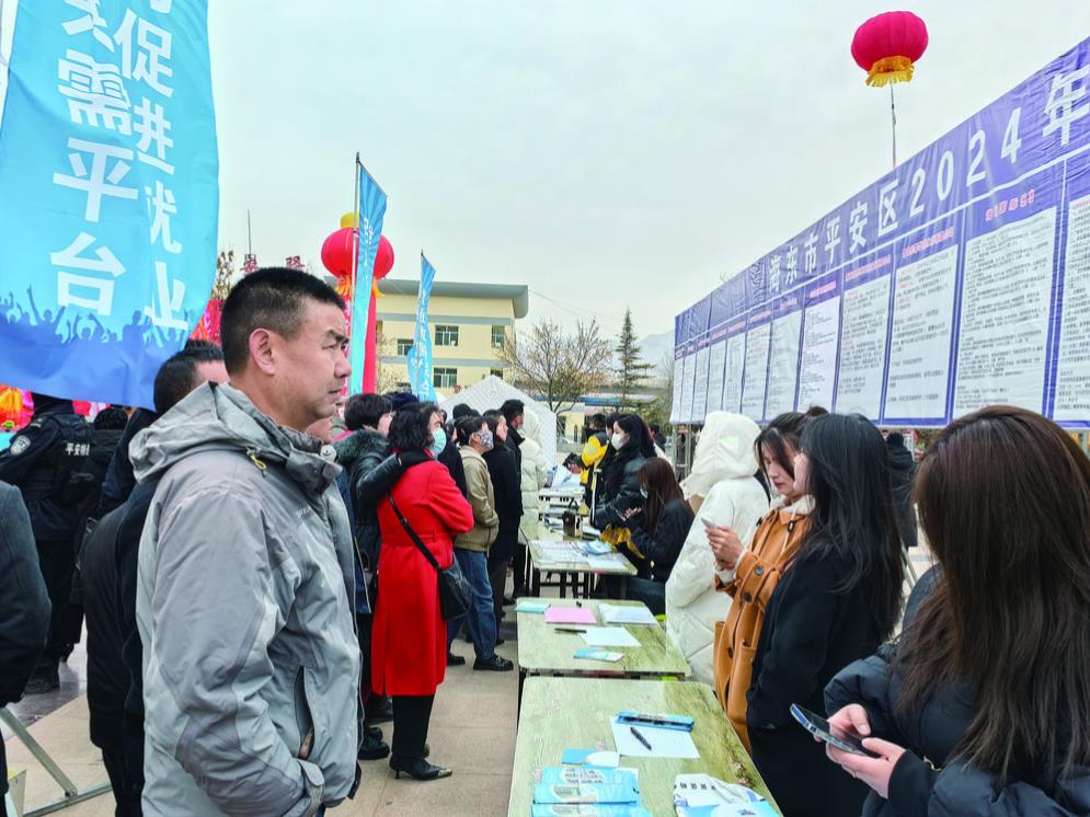 活動(dòng)當(dāng)日,專場招聘會現(xiàn)場設(shè)置了無錫市企業(yè)招聘專區(qū)、省內(nèi)外企業(yè)招聘專區(qū)及就業(yè)政策宣傳、咨詢服務(wù)區(qū)。來自省內(nèi)外的100多家重點(diǎn)企業(yè)現(xiàn)場提供建材、電子信息、財(cái)務(wù)、旅游等就業(yè)崗位9000余個(gè)。其中,江蘇省無錫市惠山區(qū)56家企業(yè)601個(gè)崗位招聘5889人。1800名求職者當(dāng)日達(dá)成就業(yè)意向318人,達(dá)成去無錫就業(yè)意向32人。之后,平安區(qū)將為簽訂就業(yè)合同的農(nóng)民工提供返崗復(fù)工、行前指導(dǎo)、“點(diǎn)對點(diǎn)”運(yùn)輸?shù)葴剀胺⻊?wù),引導(dǎo)農(nóng)民工安全有序外出。