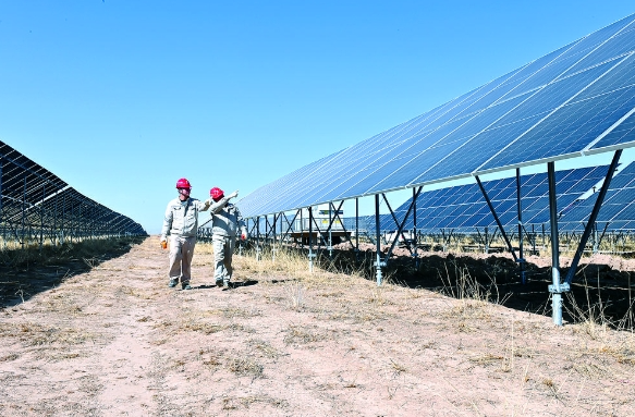 對于光伏產(chǎn)業(yè)發(fā)展而言,“智”造既能讓電站建設(shè)運(yùn)維等更加便捷,也能讓光伏組件的生產(chǎn)能效提高。在海南州興海縣河卡灘,國家第一批“沙戈荒”重點(diǎn)大型風(fēng)電光伏基地建設(shè)項(xiàng)目——大唐興海大基地50萬千瓦光伏項(xiàng)目現(xiàn)場,運(yùn)維員張國茂、趙潤峰正在定期巡檢工作,檢查光伏板、逆變器、變壓器等設(shè)備的外觀是否損壞、連接是否松動、是否有異常聲音,詳細(xì)記錄運(yùn)行數(shù)據(jù),以便及時(shí)發(fā)現(xiàn)異常情況。