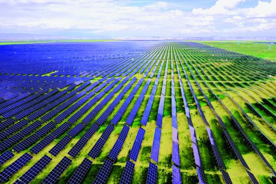 位于海南藏族自治州共和縣塔拉灘一望無垠的“光伏藍(lán)海”。黃河公司供圖