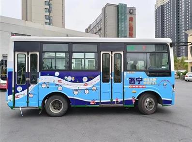 上午10時,中心廣場北站,記者在一眾公交車中一眼便看到了旅游公交車的“身影”,別看它車體較小,但藍白相間的配色和車身上大大醒目的“西寧”兩個字,不僅讓人眼前一亮還給人一種清新干凈的新潮感,這便是旅游公交車身噴涂與其他線路公交車不一樣的地方。據西寧公交集團有限責任公司工作人員介紹,旅游專線車身的噴涂以高原藍為底色,除了醒目的“西寧城市旅游觀光巴士”字樣外,還繪有西海路豹街、野生動物園、人民公園、新千夜市、下南關街等眾多西寧本地城市地標圖樣,以此展現西寧充滿蓬勃生機的城市形象。此外,旅游公交車內的座椅上和站點指示牌上也清晰地標明了各大站點周邊的市區旅游景點和地標性網紅打卡點,讓游客一目了然。