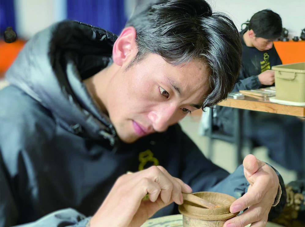 隨著非遺文化附加值不斷增長,班瑪縣越來越多的人開始學習和傳承黑陶制作技藝。如今,謝格太有固定學徒工19人,再加上黑陶原料提供、運輸、銷售等與黑陶產業(yè)相關的從業(yè)人員,在班瑪縣這個只有3萬多人口的小縣里,平均每300個人中,就有一人通過黑陶實現(xiàn)了創(chuàng)收增收。