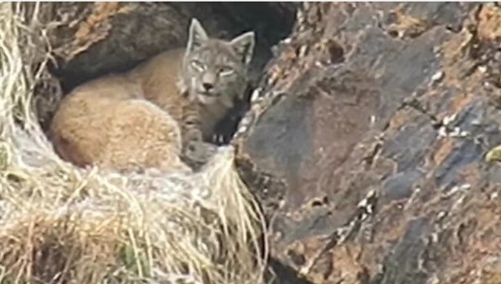 本來故事就這樣畫上了句號,但在5月31日,三江源國家公園長江源園區曲麻萊縣葉格鄉攝影師、生態管護員才仁,在日常巡護中無意經過一處巖洞時,遠遠看到一個洞穴內有一只“大貓”,發現大貓身下還有幾只“小貓”,他小心翼翼用手機拍攝了下來,拿回去詳細比對后發現是國家二級保護動物猞猁,一只成年猞猁躺在巢穴內和自己的孩子玩耍嬉戲。