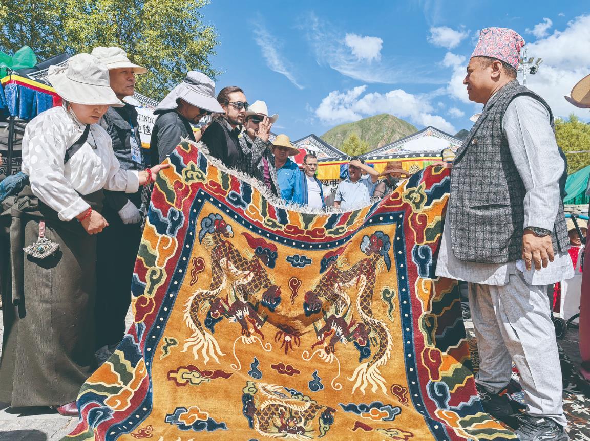 驕陽似火的天氣,點燃購銷熱,展會現場人潮涌動、熱鬧非凡。各展位上,尼泊爾地毯、手工藝品、服飾等特色商品琳瑯滿目,吸引眾多客商前來選購。此次展會還充分利用網絡平臺,開展了線上推廣活動,實現線上線下融合互動,進一步擴大影響力和公眾參與度。雖然大多尼泊爾商人與玉樹本地消費者語言溝通不便,但這絲毫沒有降低買賣雙方的購銷熱情,大家紛紛拿出手機輸入價格數字溝通購銷意愿。