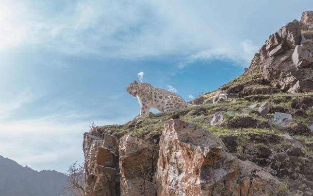 靜靜潛伏,默默拍攝到“雪山之王”雪豹穿梭山嶺、悠閑踱步的影像,登上央視新聞,這是攝影師旦增桑周的作品。