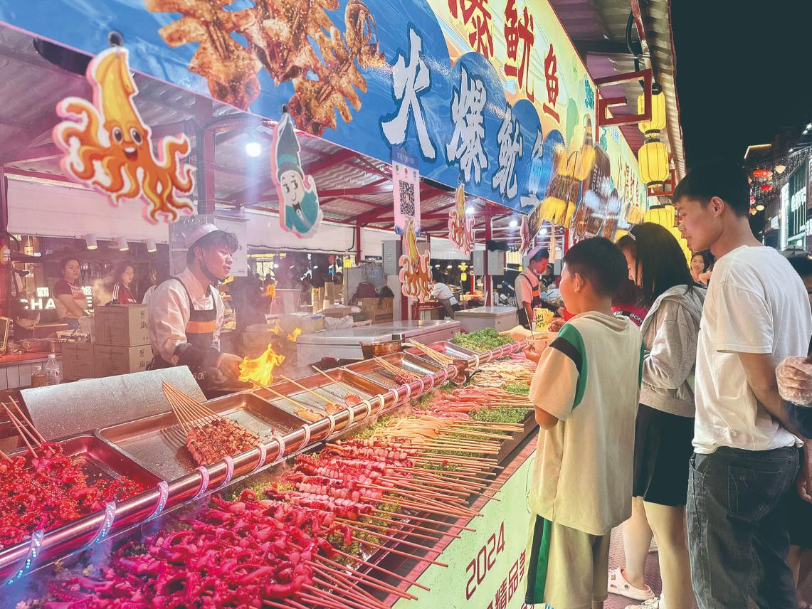 美食作為“夜經濟”中不可或缺的一部分,逐漸成為一種獨特的文化符號,反映當地生活和人文氣息。香味飄飄的“深夜食堂”讓城鎮的夜晚彌漫著濃郁的“煙火氣”,溫暖而生動。