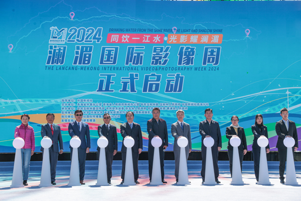領(lǐng)導(dǎo)嘉賓代表共同啟動2024瀾湄國際影像周。圖片由中新社青海分社提供