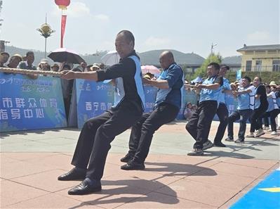 活動現場,腕力王挑戰賽氣氛熱烈,嫻熟的滾鐵環技巧贏得陣陣喝彩,旱地冰壺的每一次碰撞都引得歡呼,搶收搶種展現勤勞本色,旋轉云梯項目團結協作、共克難關,拔河比賽將氛圍推向高潮,“一二、一二”的口號聲響徹村莊。場上比得歡,場下看得樂,參賽觀眾從耄耋老人到垂髫兒童,在賽場駐足、喝彩,為自己村鎮的隊伍加油助威,歡笑聲、加油聲、歡呼聲此起彼伏。