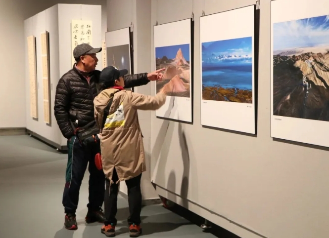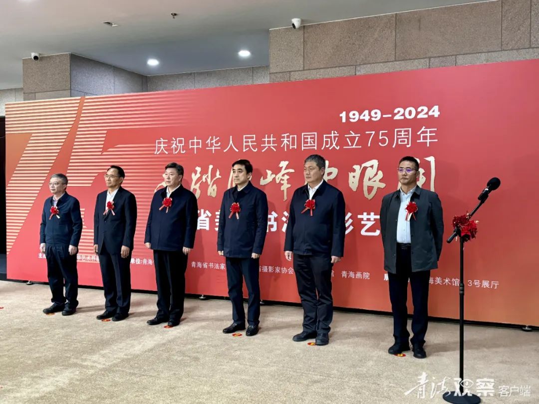 “又踏層峰望眼開(kāi)——慶祝中華人民共和國(guó)成立75周年青海美術(shù)書(shū)法攝影藝術(shù)展”在青海美術(shù)館開(kāi)幕。圖片來(lái)源:青海觀察客戶端。