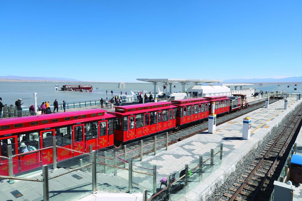 為做好假期高峰客流的接待工作,茶卡鹽湖景區提前部署安排,增派600余名工作人員以確保運營順暢,將軌道小火車增加至18列、觀光車增加至11輛,游船快艇增加至11艘,從而確保游客能夠及時乘坐體驗,盡情領略鹽湖壯麗獨特之景。