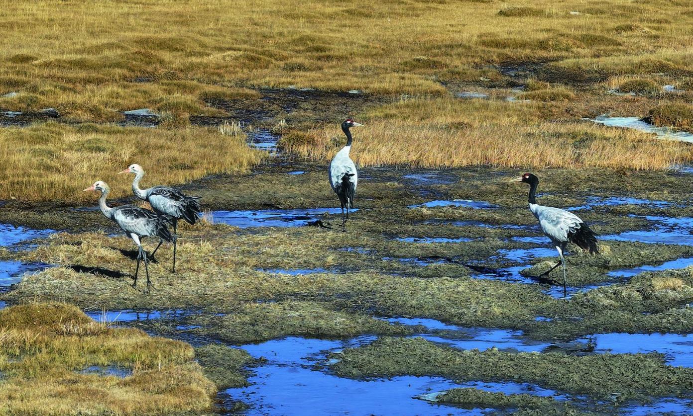 黃河源園區境內,河流如脈絡般密布,湖泊似繁星般眾多。這里擁有扎陵湖、鄂陵湖、星星海、冬格措納湖等大大小小的湖泊5849個,眾多的河流濕地、湖泊濕地、沼澤濕地總面積40.08萬公頃,為豐富的生物多樣性提供了得天獨厚的條件。這里有藏野驢、藏原羚、雪豹等野生動物69種,是藏野驢、藏原羚大種群的集中分布區之一。