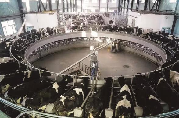 王明亮說,每天7時,一頭頭奶牛會沿著特定通道,進入擠奶轉盤。每頭牛對應一套擠奶設備,擠奶盤上可同時容納50頭奶牛。工人們會先清洗、消毒、安裝擠奶設備等,一切準備就緒,擠奶器啟動,乳白色的牛奶順著管道流進奶罐里。整個過程僅需10分鐘。