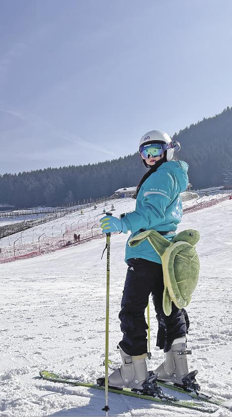 工作人員薛強一邊為游客講授滑雪技巧,一邊介紹:“滑雪場占地300畝,靠近游客中心的位置是戲雪區,設置了雪地摩托車、雪地卡丁車、雪圈等娛樂設施;┑栏鶕煌巳盒枨螅譃槌酢⒅小⒏呷齻級別,游客可以根據自身熟練度自由選擇。今年滑雪場升級改造,新增設了一條越野滑雪道,一經推出就大受歡迎。”