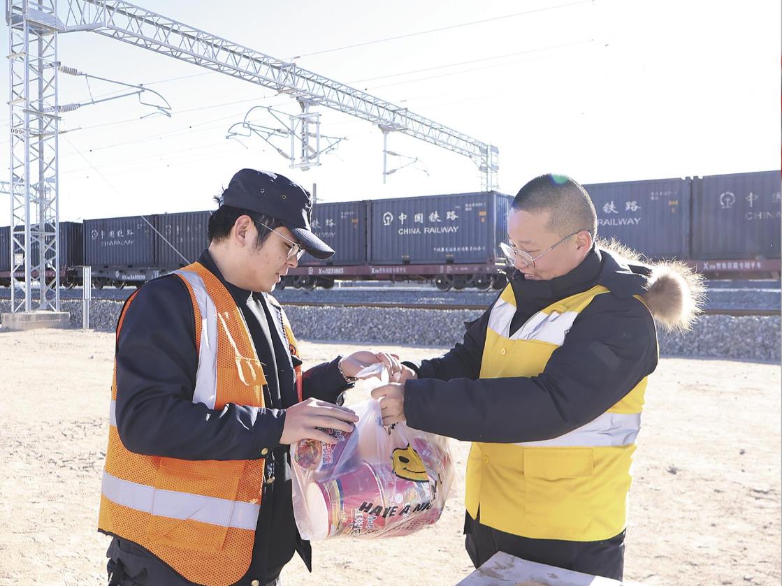 在春運(yùn)期間,茫崖站的送餐任務(wù)繁重且有其特殊性。曾令秀補(bǔ)充道:“咱們每天要完成50趟送餐,其中絕大部分是針對(duì)貨運(yùn)列車的。貨運(yùn)列車車次多、運(yùn)輸任務(wù)重,乘務(wù)員常常在途中連口熱乎飯都吃不上。而客運(yùn)列車每天只有一趟,相比之下,客運(yùn)列車的乘務(wù)員在餐飲保障上相對(duì)容易一些,所以貨運(yùn)列車乘務(wù)員的艱辛就更需要我們關(guān)注。”