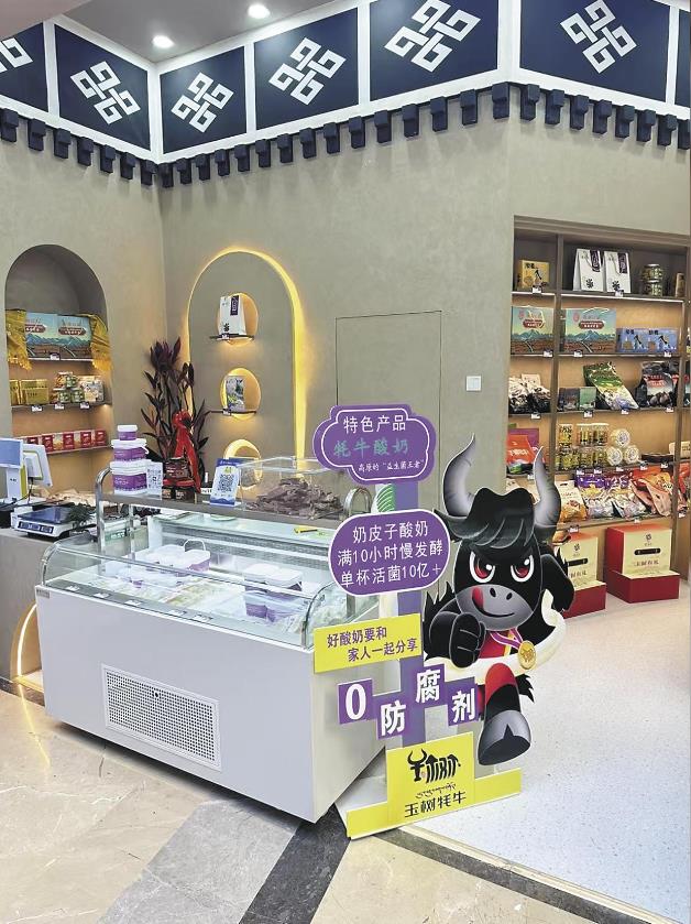 代青永措說:“今天雖然是上班日,但是來店里的人還是很多,店里的特產(chǎn)銷售也非常好。酸奶、人參果都是搶手貨,牦牛肉賣得也不錯,很多人都是直接從這里下單寄到外地去。”