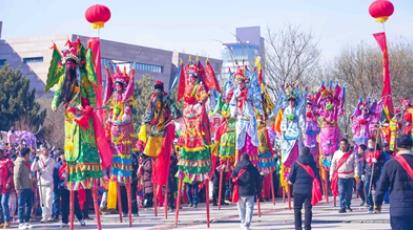 “瞧!高蹺隊來了……”踏著傳統的鼓點,由61人組建的大型高蹺隊踩著節奏上場了,演員們扮上各種角色,扭動著身姿,將現場氛圍推向高潮。現場群眾喝彩聲不斷,紛紛舉起手機記錄這熱鬧喜慶的一幕,整個現場沉浸在一片歡樂祥和的氛圍中。