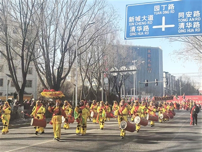 “城中區的社火主要以傳統項目為主,像舞龍舞獅、抬花轎、旱船、高蹺、寸蹺等,都是老一輩傳承下來的經典表演。每年的社火活動從正月初三開始,一直持續到正月十七結束。”城中區文化館副館長莫重暉介紹說,今年參演的1500人中,年齡最大的75歲,最小的僅4歲,年齡跨度雖大,但傳統社火的韻味卻絲毫未減,保留得十分完整。